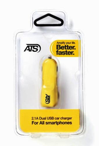 מטען USB לרכב 2A צבע צהוב עם 2 כניסות ATS